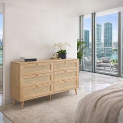 Mid-Century Modern 6 Drawer Dresser, Light Oak Wood TV Stand for Bedroom, 47.2" Wide Chest of Drawers with Silver Legs, Storage Cabinet$140Santa Ana, CA