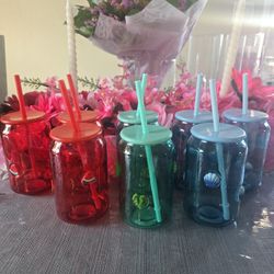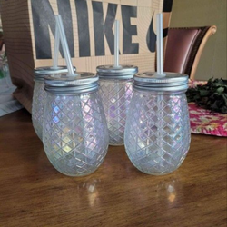 4 Iridescent Glass Jar Cups with Straws$15Santa Ana, CA