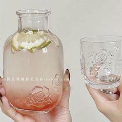 Retro "Ins-Style" Embossed Floral Glassware Set: Creatively Designed Juice & Fruit Tea Pitcher and Cup$10Diamond Bar, CA