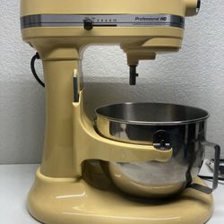 Yellow Kitchenaid Professional Hd Bowl Lift Mixer And Three Attachments Appliance Kitchen Aid Whisk Hook Paddle $250Anaheim, CA