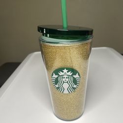 Starbucks Gold Glitter Cold Cup 16 oz Tumbler with Green Lid & Straw$4City Of Industry, CA