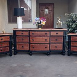 9 Drawer Dresser With Pair Of 3 Drawer Nightstands - All Solid Wood - Kathy Ireland Home- Black Frames With Walnut Toned Fronts$675Pico Rivera, CA