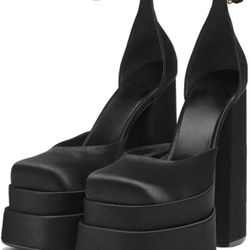 Satin Rhinestone Ankle Buckle Strap High Chunky Block Heel Platform $30South Gate, CA