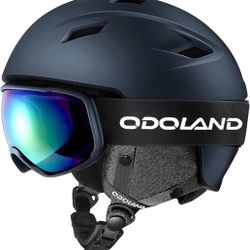 Small Odoland Ski Helmet and Goggles Set, Snowboard Helmet Glasses for Men, Women & Youth - Shockproof/Windproof Gear for Skiing