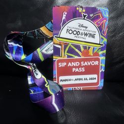 DCA 2024 Disney Park Magic Key Food & Wine festival Sip n Savor Pass Lanyard Foo$10Bellflower, CA