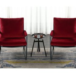 Set Of 2 Red Velvet Modern Accent Chair, Upholstered Living Room Armchair with Steel Frame [NEW]$180Hacienda Heights, CA