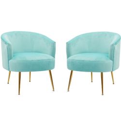 Set Of 2 - Light Blu Velvet Accent Chairs With Gold Trim [NEW] **Retails For $300+$200Hacienda Heights, CA