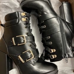 New In Box Womens Black Lace Up Heel Boots / booties With Gold Accents Size 8 $35Orange, CA