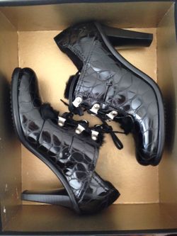 Black patent leather alligator embossed booties Donald J.Pliner$320Beverly Hills, CA