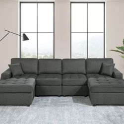 New 113” Chennile Sectional Couch, U-Shaped Sectional Sofa, Couch, Sectionals, Sectional And Ottoman, Couch, Black Sectional, Reversible Chaise Sofa D$799Anaheim, CA