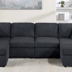 Stylish ‼️U Shape Sectional Sofa Black Corduroy $439Bellflower, CA