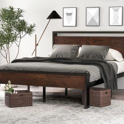 Full Size Metal Platform Bed Frame with Wooden Headboard and Footboard$100Chino Hills, CA