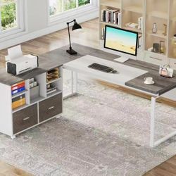 F1893AB L-Shaped Executive Desk with Reversible File Cabinet, 63" Office Desk with Storage Drawers, L-Shaped Computer Desk with Drawer Cabinet for Han$180Norwalk, CA