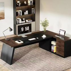 HL0204AB 78" L-Shaped Executive Desk, Large Office Desk with Drawers and Lateral File Cabinet, Business Furniture with Storage Shelves, Modern Compute$180Norwalk, CA