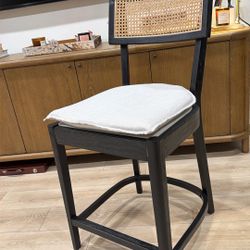 Set of 2 - Natural Oak Finish Wood Upholstered Rattan Cane Back Bar Chairs [NEW] ** Retails for $415 <Assembly Req> $180Hacienda Heights, CA