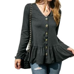 Doublju Women's Long Sleeve Button Down Top Cardigan with Contrast Bottom$25Westminster, CA