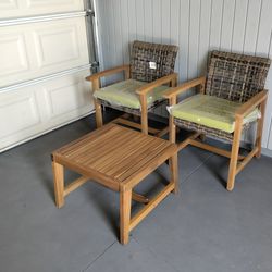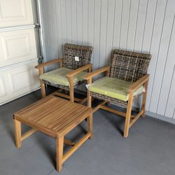 Outdoor patio 3 piece bistro set, 2 chairs with coffee table and cushions$150Calabasas, CA