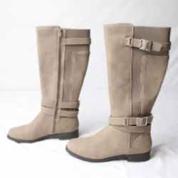 Just Fab Women Round Toe Mid Calf Boots Side Zipper Wide Calf Boots Double Straps Flat Casual Daily Outfit Shoes$25Lynwood, CA
