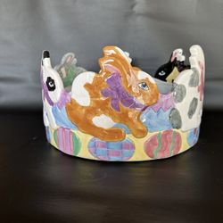 Vintage 1998 Lotus Bunny Rabbits Easter Large Ceramic Serving Bowl 6” H -12”W$150Hawthorne, CA