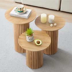Round Nesting Coffee Table Set of 3,Mid Century Modern Fluted Coffee and End Table Set,Small Circle Wooden Side Table Drink Table for Living Room (Nat$65Arcadia, CA
