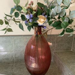 Red Glass Vase With Flowers Home Decor $30Pasadena, CA