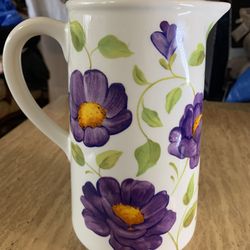 Teleflora Pitcher White Floral Vase Purple Flowers & Green Vine Leaves$20Los Angeles, CA