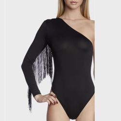 NWOT-black 1 Cut Off Sleeve Fringe Bodysuit 🖤$18Long Beach, CA