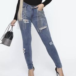 Fashion Nova Fringe Skinny Jeans - Womens Medium Blue Wash Size Large$45Chino Hills, CA
