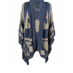 Mexican Serape Pancho Blanket Jacket with Fringe Blue Side Pockets Large $20Pico Rivera, CA