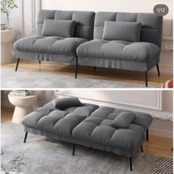 Gray Fabric Futon Couch with Adjustable Backrest Convertible Futon Sofa Bed with Metal Legs Convertible Sofa Bed$180Torrance, CA