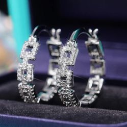 Silver Plated Hoop Earrings With Cubic Zirconia Unisex Hip Hop Jewelry For Women$15Los Angeles, CA