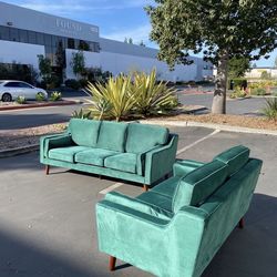New Set Only! $385!! Velvet Sofa, Modern 3-Seat Couch (80") And Loveseat (59") In Green$385Fullerton, CA