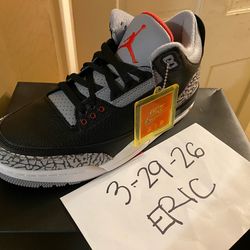 2018 NIKE AIR JORDAN 3 III RETRO OG BLACK CEMENT size US 10 PURCHASED FROM CHAMPS$250Glendale, CA