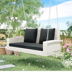 2-Person Wicker Hanging Porch Swing,Patio Rattan Swing Bench with Chains,Cushion and Pillow,F-4$175Costa Mesa, CA