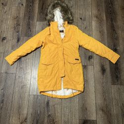 Abercrombie And Fitch Yellow Rain Coat With Fur Faux Hood$60Los Angeles, CA