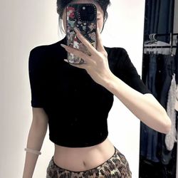 Women’s summer fashion set: mid-sleeve slim cropped top and leopard print mini skirt$15Chino Hills, CA