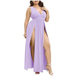 Sexy Double High Slit Deep V Neck Plus Size Sundresses Thigh Split Maxi$25Whittier, CA