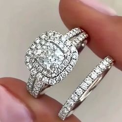 2pcs Elegant Stacking Rings Micro Paved Shining Zirconia Classic Halo Design Engagement / Wedding Ring Evening Party Decor$40Garden Grove, CA