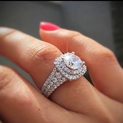 Exquisite Promise Ring Classic Halo Design Paved Shining Rhinestone Engagement/ Wedding Ring Dupes Luxury Jewelry$40Garden Grove, CA