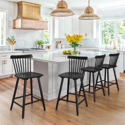 Upgraded Windsor Wooden Black Bar Stools Set of 4, 24 Inch Counter Height Barstools with Spindle Back/Bigger Seat for Kitchen Island$125Irvine, CA