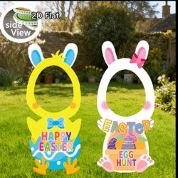 Brand New Flat 2pcs Easter Yard Decoration Set, Easter Bunny and Chick Photo Frame Stand, 2D Cartoon Ornament, Garden Yard Holid$15Hawthorne, CA