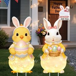 Brand New 2D Flat 2pcs Easter Yard Decoration Set, Easter Party Scene Bunny and Chick Theme Decorative Props, Outdoor Joyful Easter$15Hawthorne, CA