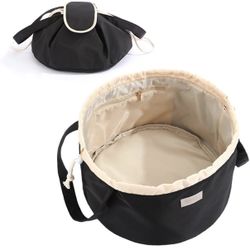 Lay Flat Drawstring Makeup Bag,Magic Osmetics Pouch,Portable Organizer Bag,Large Toiletry Bag for Women Travel Gift (Black)$5Diamond Bar, CA
