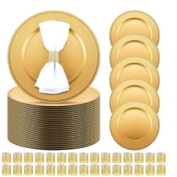 Tanlade 100 Pcs Charger Plates &Napkin Rings Set Include 50 Plastic Beaded Plate Chargers 50 Napkin Rings 13'' Round Dinner Plate Chargers S$185Perris, CA
