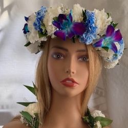 Combo: Blue Flower Crown And Orchid Lei $140Norwalk, CA