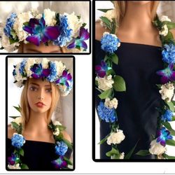 Lei Set Flower Crown Matching Ti Leaf Lei $110Norwalk, CA