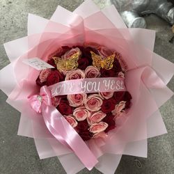50 Pink And Red Rose Bouquet $165Anaheim, CA
