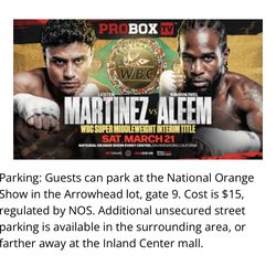 Boxing Match Alex Martínez Tickets$60Pomona, CA