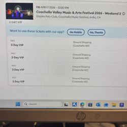 Coachella weekend 1 tickets$1,800Santa Ana, CA
