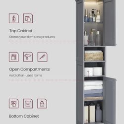 Tall Storage Cabinet with Lights, Slim Freestanding Cabinet with Adjustable Shelves, for Small Spaces, Bathroom, Living Room, Modern, 11.8 Inches Wide$50Ontario, CA